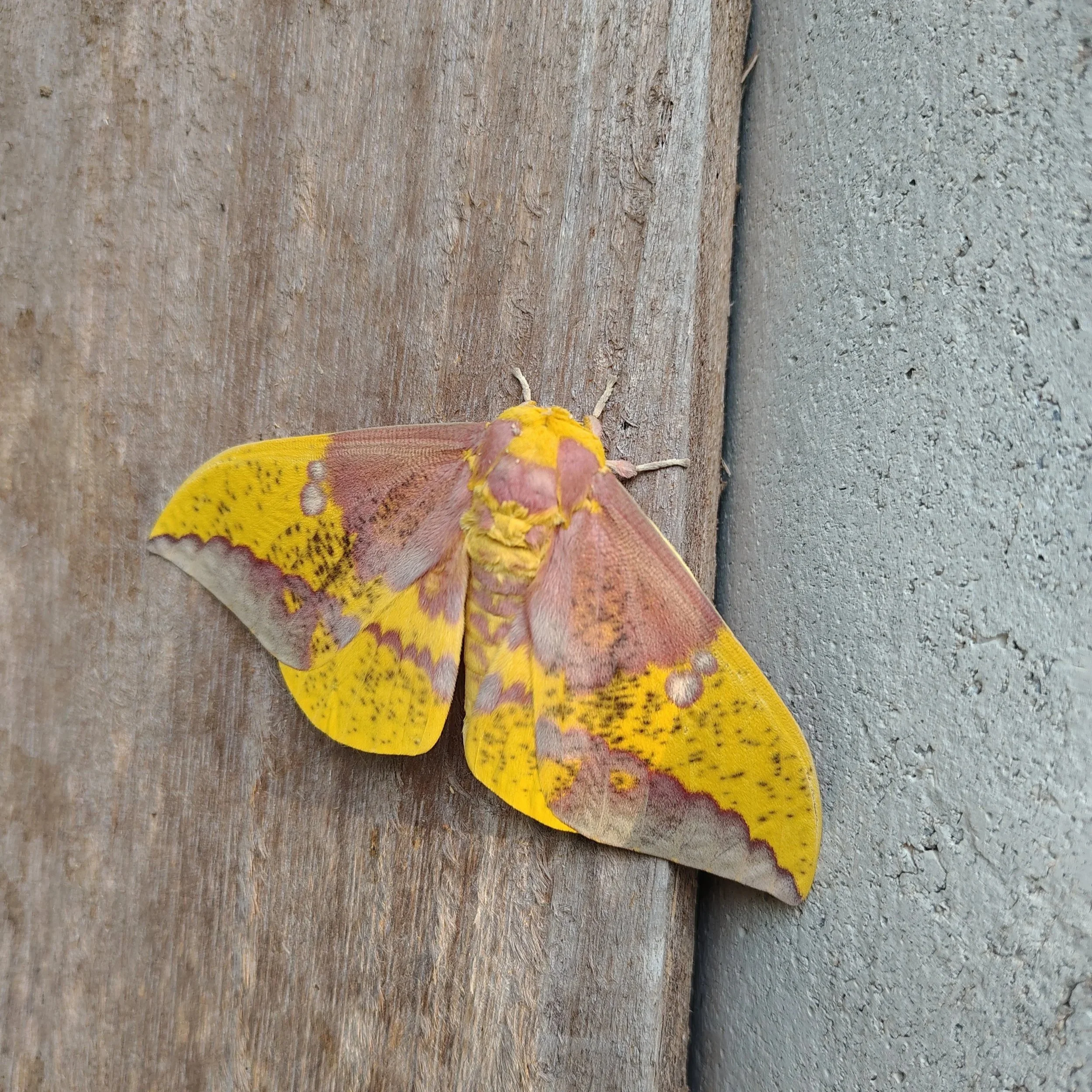Imperial moth (Eacles imperialis) resting on the side of the guesthouse in Indian Creek village. My first sighting ever of this species!
